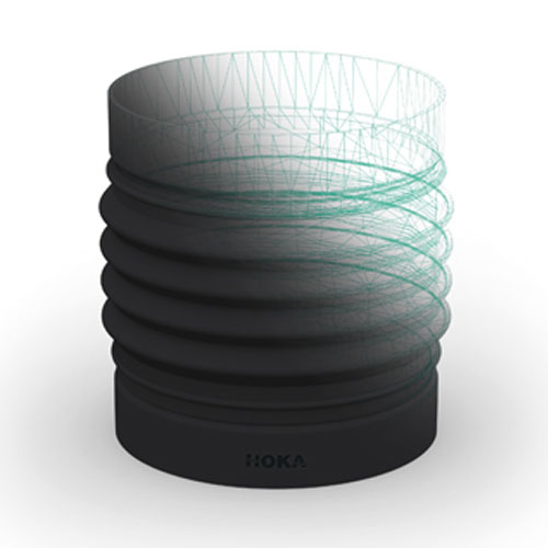 - PP-el Basis-weich (elektrisch-leitfähig)  Flexmanschette in runder Bauform mit PPs-el Muffenanschluss zur Verbindung von Rohren in einer Ab- und Zuluftanlage mittels Schweißverfahren und zum Ausgleich von Längendehnungen und Schwingungen.