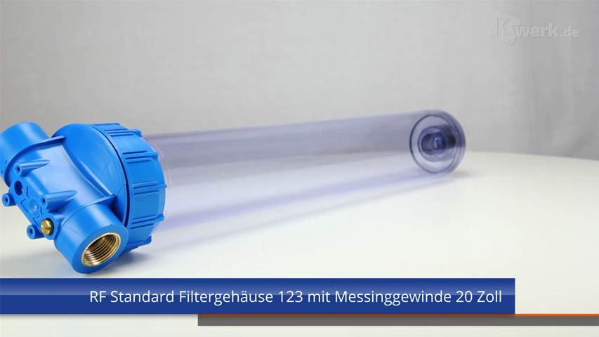 RF Standard Wasserfilter Filtergehäuse 20 Zoll,  mit 1/2 Zoll MS-Innengewinde, blau/transparent