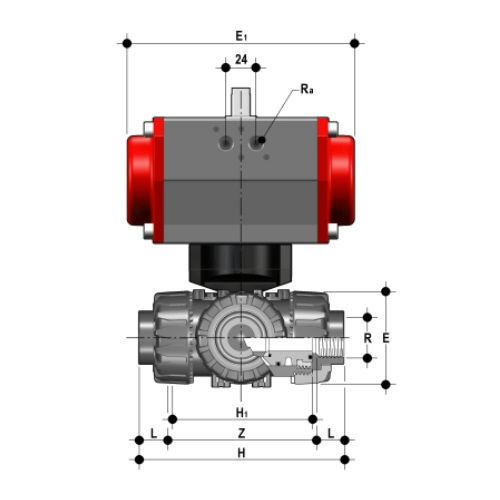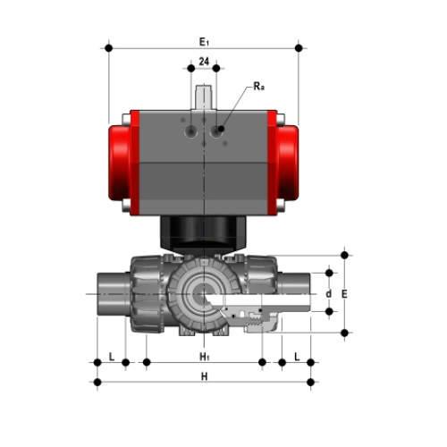 PP 3/2-Wege-Kugelhahn, pneumatische Ausführung