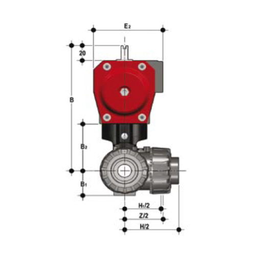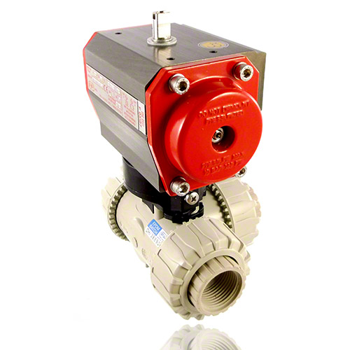 | 3/2-Wege-Kugelhahn aus PP mit pneumatischem Stellantrieb Funktion: einfach wirkend, inklusive optischer Stellungsanzeige Kugel mit L-Bohrung Standardkugelstellung: 1 Steuerdruck: Standard 5 bar reduzierter Steuerdruck: auf Anfrage Steueranschluß: G 1/8' Namur (DN15) G 1/4' Namur (DN20 - DN50) Anschluss: Gewindemuffe Dichtung PTFE/EPDM |