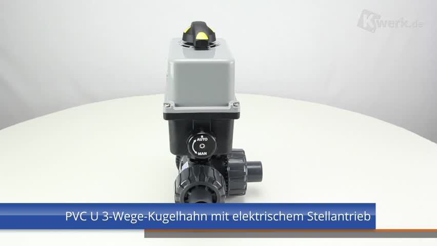 | 3/2-Wege-Kugelhahn aus PVC-U mit elektrischem Stellantrieb mit Endlagenrückmeldern, Handnotbetätigung und optischer Stellungsanzeige Kugel mit L-Bohrung Standardkugelstellung: 1 Stellantriebsdaten: Standard 90-240V / 50-60Hz (AC) ohne Aufpreis 24V AC/DC Andere Spannungen auf Anfrage ***DN50 = PN16 auf Anfrage Anschluss: Klebestutzen Dichtung: PTFE/EPDM |
