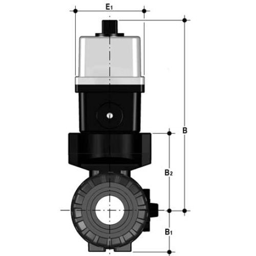 | 2/2-Wege-Kugelhahn mit gesicherten Überwurfmuttern aus PVC-U mit elektrischem Stellantrieb -mit Endlagenrückmeldern, Handnotbetätigung und optischer Stellungsanzeige -Stellantriebsdaten: Standard 90-240V / 50-60Hz (AC), ohne Aufpreis 24V AC/DC -Andere Spannungen auf Anfrage -ANSI Flansche auf Anfrage -***DN50 = PN16 auf Anfrage -Anschluss: Festflansch ISO-DIN aus PVC-U -Dichtung: PTFE/EPDM - ab d 75 mm Anschluss: Festflansch aus PVC-U gebohrt mit ovalen Schraubenlöchern für DIN und ANSI Standards -Dichtung: PTFE/EPDM |