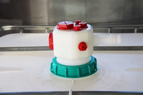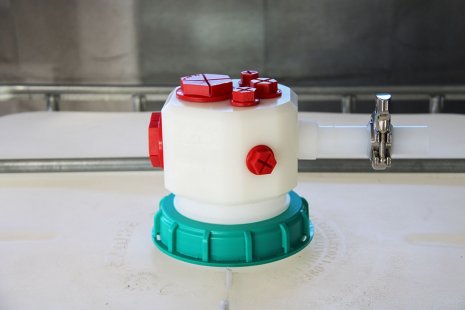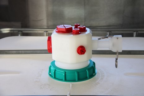 ![]() IBC-1000l Schraubdeckel DN150 grün, mit Tri Clamp Anschluss d 3mm, Sauglanze mit Rückschlagventil |