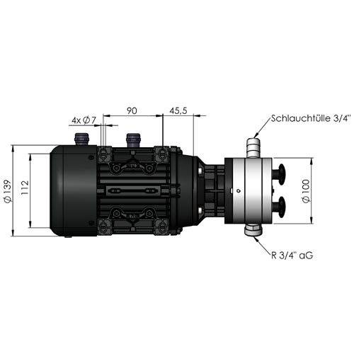 Impellerpumpe mit Motor, Kabel und Stecker, Fördermenge 28l/min, 400 V, mit Frequenzumrichter, FKM Dichtung