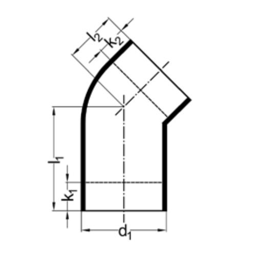 Winkel 45° mit einseitig langem Schenkel werden als Übergang von Fall- in Horizontalleitungen verwendet