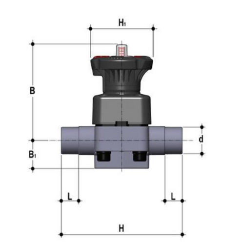 ABS Membranventil, Klebestutzen, PTFE Membrane