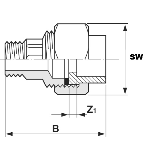 | -Anschluss: Klebemuffe ABS/Innengewinde Messing -Dichtung: EPDM -BSP="Britisch Standard Parallel" (Gewindeform) -SW=Schlüsselweite |