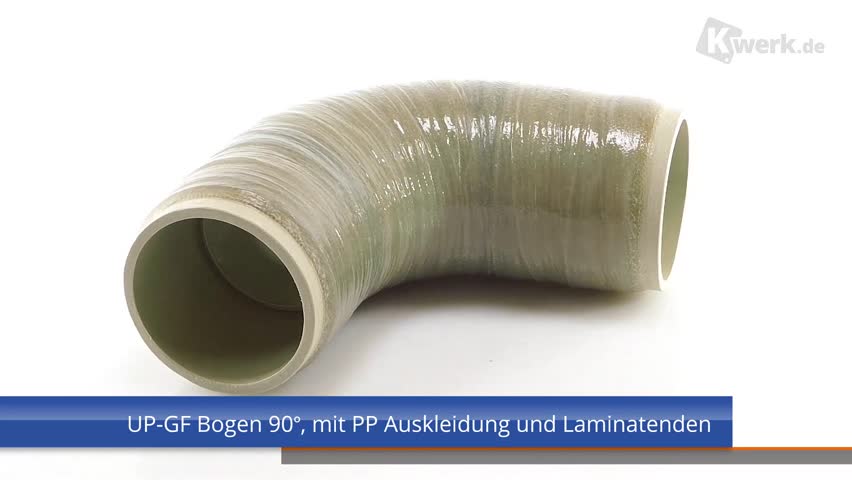 UP-GF-PP Bogen 90° DIN 16 966, Form E1, Rohrtyp B, Liner PP, mit Laminatende, PN 10