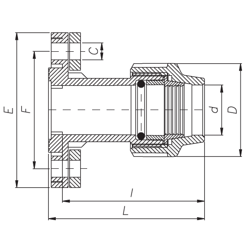 PP Klemmverbinder Typ UNIDELTA für PE Rohre, Flanschmuffenstück
