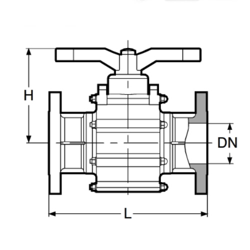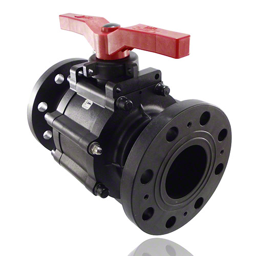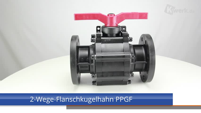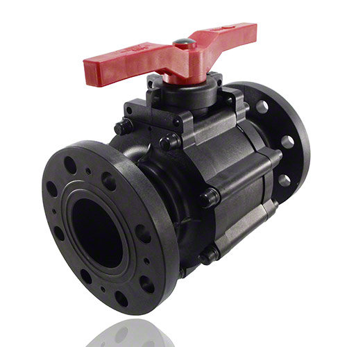 2-Wege-Flanschkugelhahn PPGF, EPDM = roter Hebel