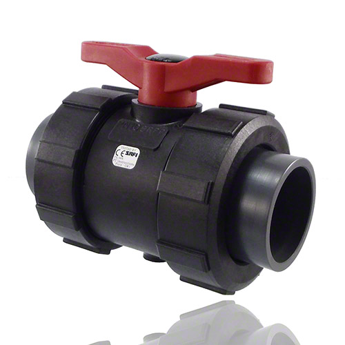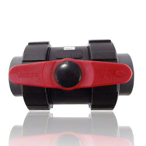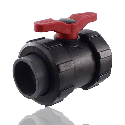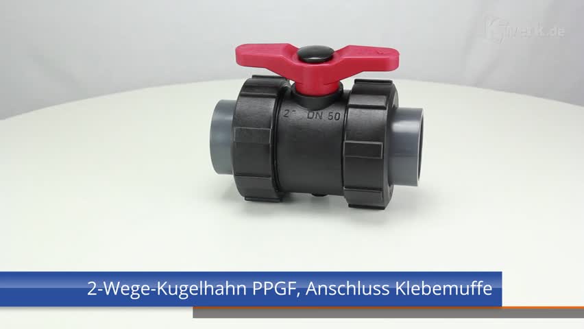 2-Wege-Kugelhahn PPGF, PVC-U-Klebemuffen, EPDM = roter Hebel