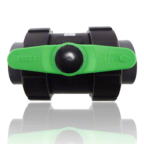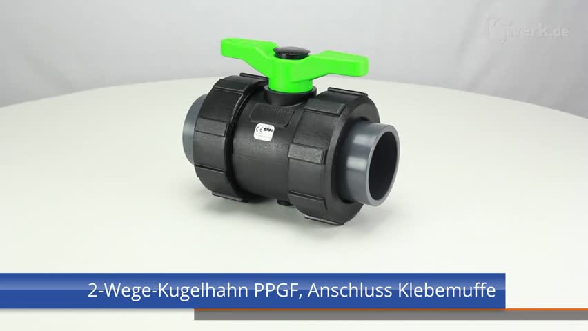 2-Wege-Kugelhahn PPGF, PVC-U-Klebemuffen, FPM = grüner Hebel