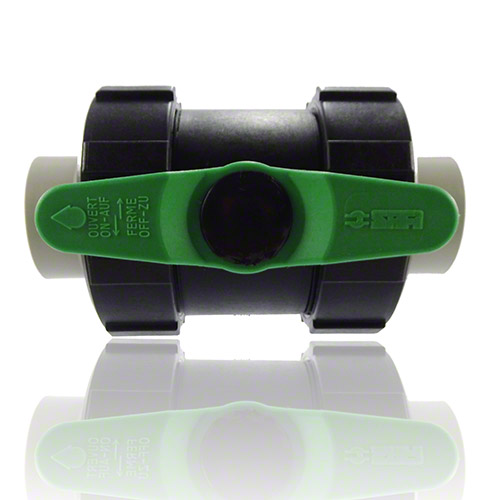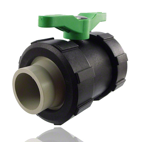 2-Wege-Kugelhahn PPGF, PE-Muffen, FPM = grüner Hebel