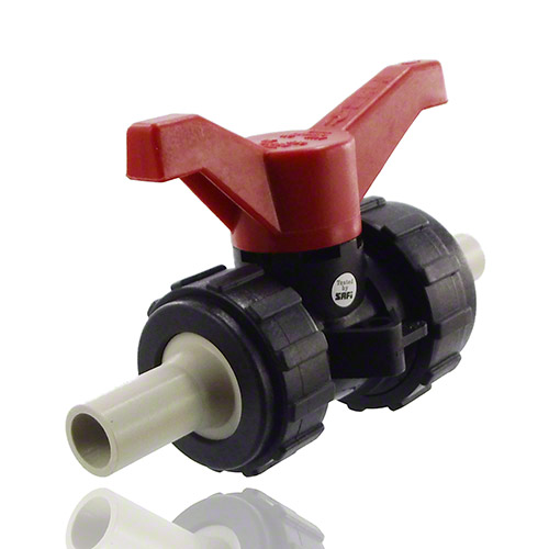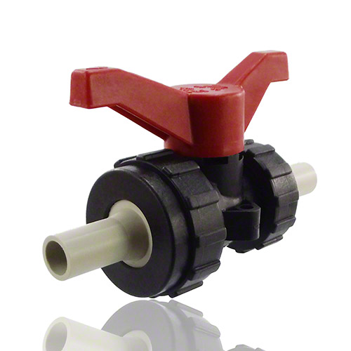 2-Wege-Kugelhahn PPGF, PP-Muffen, EPDM = roter Hebel