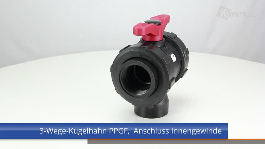 3-Wege-Kugelhahn PPGF,  Innengewinde, EPDM = roter Hebel