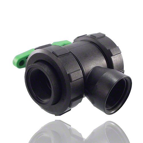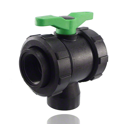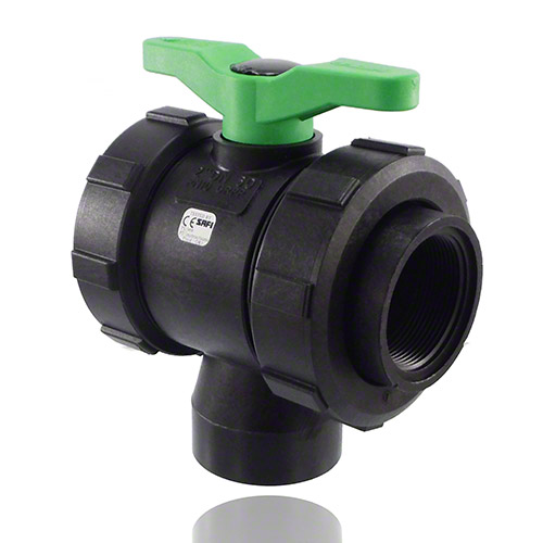3-Wege-Kugelhahn PPGF, Innengewinde, FPM = grüner Hebel