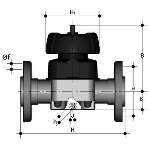 | - Anschluss:Losflansch - Membrane: FPM - mit schwarzem Handrad |