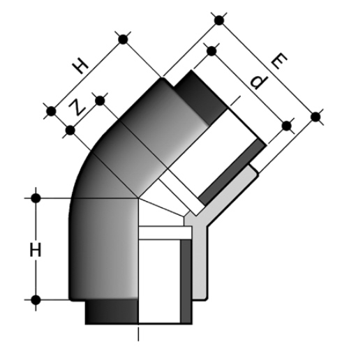 PP Winkel 45°, SDR 11, zum Heizelementmuffenschweißen