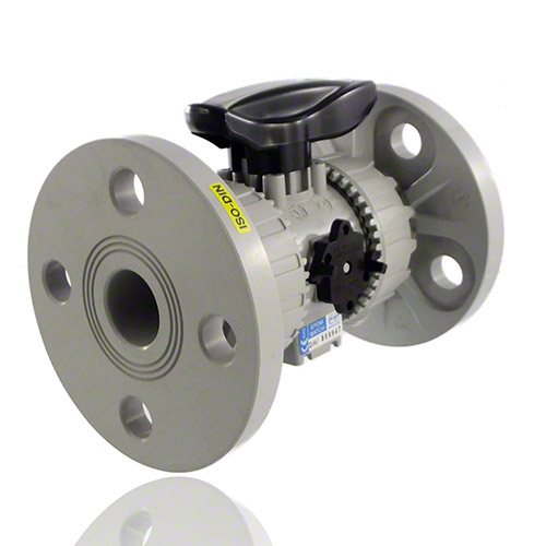 PVC-C 2-Wege-Kugelhahn, FPM, Festflansch