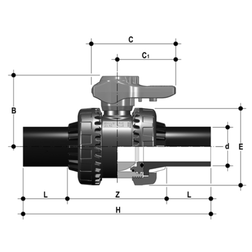 PVC-U KugelhahnVXE , PE100-LS-Stutzen, EPDM