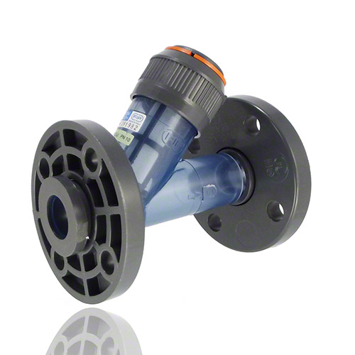 | -Dichtung: EPDM -Anschluss: Losflansch aus PVC-U -eingebautes Filternetz mit Maschenabstand 1,5 mm, Verunreinigung ab 0,5 mm trennbar -Einbau: waagrecht und senkrecht in Leitung -Durchflussrichtung: Siebteil nach unten gerichtet -andere Maschenabstände auf Anfrage |