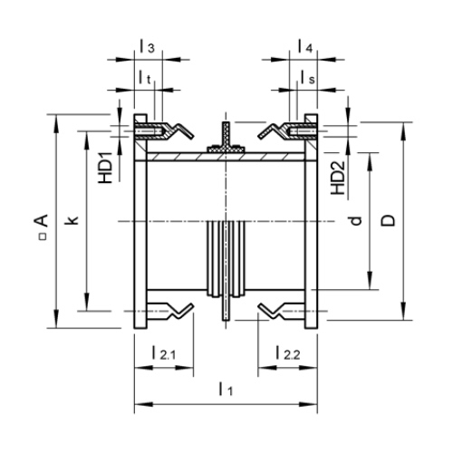 | -beidseitiger Anschlussflansch -Bohrung Lochkreis gem. EN 1092 PN10 (DIN 2501) -mit Schutzstopfen für Hülsendübel -Dichtkragen aus Kautschuk und Spannbändern -Baulänge bei Bestellung bitte angeben -transparenter Blinddeckel oder andere Baulänge (l1) auf Anfrage -HD1 = verzinkt, HD2 = V4A |