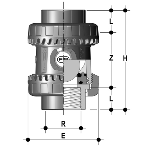 PVC-U Kugelrückschlagventil, Gewindemuffe, EPDM