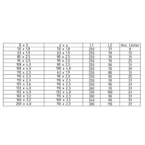 D x S d x s [mm] L1 L2 Anzahl Löcher Gewicht VE Art.-Nr. Artikel bestellen