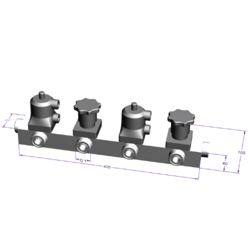 Der dargestellte Verteiler, stellt nur eine mögliche Ausführung dar. Es besteht die Möglichkeit, den Block mit Pneumatik-Antrieben entsprechend auszurüsten. Mögliche Bohrungen zur Einbringung  von Messstellen, wie z.B. PH, REDOX oder Temperatur sind ebenso möglich, wie die Reduzierung des Abgangs, bzw. des Durchgangs. Die Anschlüsse können sowohl als Gewinde, Flansch oder in anderen Ausführungen dargestellt werden.