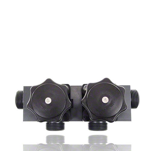 Mehrwegeventil aus PVCU mit zwei Handantrieben, Abgang reduziert, Membrane PTFE