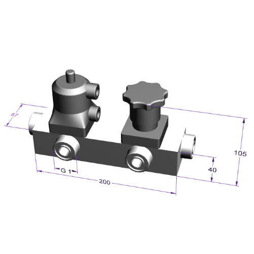 Der dargestellte Verteiler, stellt nur eine mögliche Ausführung dar. Es besteht die Möglichkeit, den Block mit Pneumatik-Antrieben entsprechend auszurüsten. Mögliche Bohrungen zur Einbringung  von Messstellen, wie z.B. PH, REDOX oder Temperatur sind ebenso möglich, wie die Reduzierung des Abgangs, bzw. des Durchgangs. Die Anschlüsse können sowohl als Gewinde, Flansch oder in anderen Ausführungen dargestellt werden.