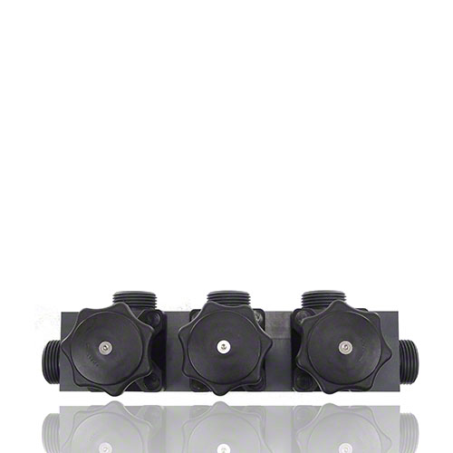 Mehrwegeventil aus PVCU mit drei Handantrieben, Membrane EPDM