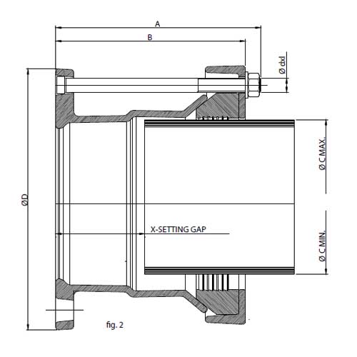 Flanschadapter mit großem Spannbereich bis zu 34 mm Durchmesserunterschied und einem Grundkörper aus qualitativ hochwertigem Duktilguss GGG 450-10. Die Epoxidharzbeschichtung verstärkt den Langzeit-Korrosionsschutz, ist verschleißbeständig und schützt vor Korrosionsfolgeschäden. Andere Beschichtungen sind auf Anfrage lieferbar. Schrauben und Muttern bestehen aus hochwertigem Stahl der Güteklasse 8.8, gem. ISO 898-1 und sind mit einer Dacromet™ Schutzschicht der Qualität B 500 versehen. Die Dacromet™ Beschichtung basiert auf einer Aluminium / Zinkpartikel-Mischung und gewährleistet somit einen hervorragenden Korrosionsschutz. Die Dichtungen bestehen aus EPDM der Qualität E / WA gem. BS EN 681-1:1996. NBR-Dichtungen sind auf Anfrage lieferbar. Sämtliche Dichtungen und Beschichtungen sind zugelassen gem. KTW bzw. DVGW für den Einsatz im Gas- und Trinkwasserbereich (NBR für Gas.) Eigenschaften - Betriebsdruck bis max. 16 bar - Auswinkelung der Kupplungen bis max. 6°. - Bohrung der Flansche gem. DIN, BS und ANSI. Genereller Einsatzbereiche der HEGAWA Kupplungen: Sämtliche, im erdverlegten und natürlich auch im nicht erdverlegten Rohrleitungsbau üblichen Materialien mit stabilen Wandungen wie: Grauguss, duktil. Guss, Stahl, Asbestzement, GFK, Stahlbeton, PVC, PE. Innenstützringe: Innenstützringe sind insbesondere beim Einsatz auf PE-Rohren bzw. sämtlichen Weichthermoplasten zu verwenden. Dünnwandige PVC-Rohre können im Einzelfall auch den Einsatz von Innenstützringen erforderlich machen. Bei Unsicherheiten bezügl. der Rohr-Wandstärken und der Rohr-Materialien ist dies im Vorfeld abzuklären, um mögliche Schädigungen der Rohre und daraus resultierende Undichtigkeiten und Folgeschäden zu vermeiden. Ebenso ist ein möglicher Unterdruck in den Rohrleitungen im Vorfeld abzuklären. |